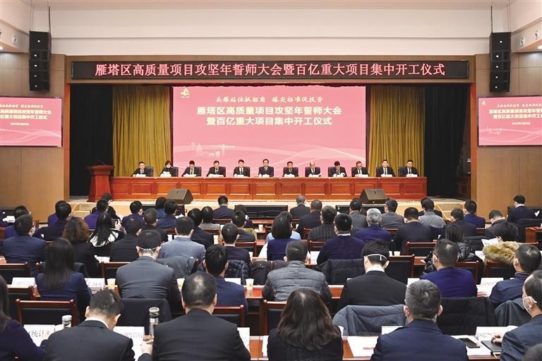 开年就开跑,起步即冲刺。新年伊始,雁塔区就吹响“拼经济、抓项目、扩投资”号角,召开全区高质量项目建设攻坚年誓师大会暨百亿重大项目集中开工仪式,成立了10个产业招商组和19个服务保障组,释放出大抓经济的强烈信号。