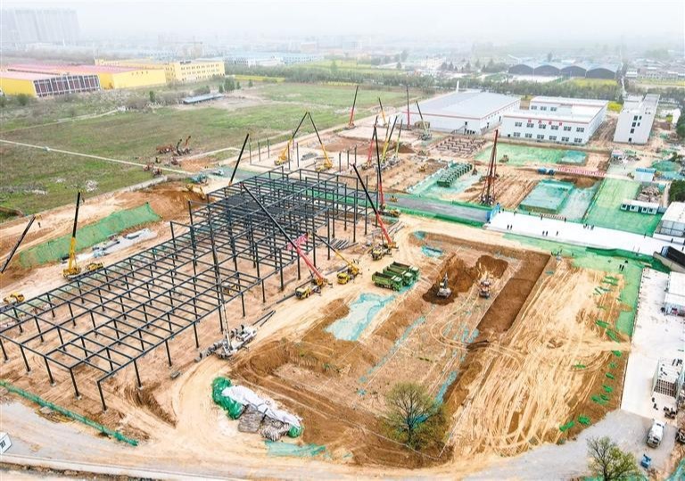 4月11日,一季度重点项目观摩团走进高陵区食品产业园项目。在施工现场看到,伴随机器轰鸣,塔吊机正在进行钢构安装,挖掘机正在进行土方回填。工人师傅有的忙着洒水,有的在用绿网覆盖裸露的黄土……