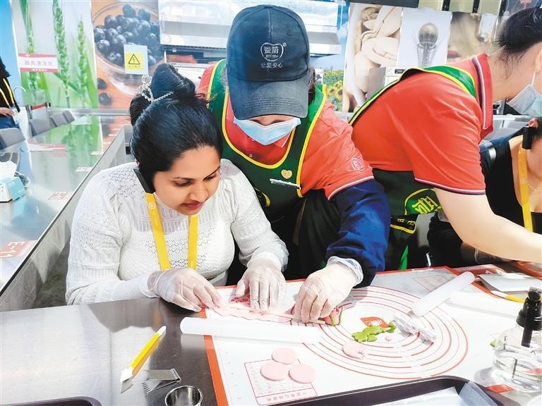 外媒记者们还在工作人员的指导下,体验包饺子、做花馍、扯面,感受地道陕西美食的制作过程。很快,一朵朵栩栩如生的面塑玫瑰花就诞生了。