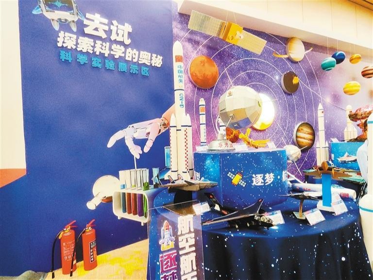高新区中小学教育科技活动成果展科学实验展示区。
