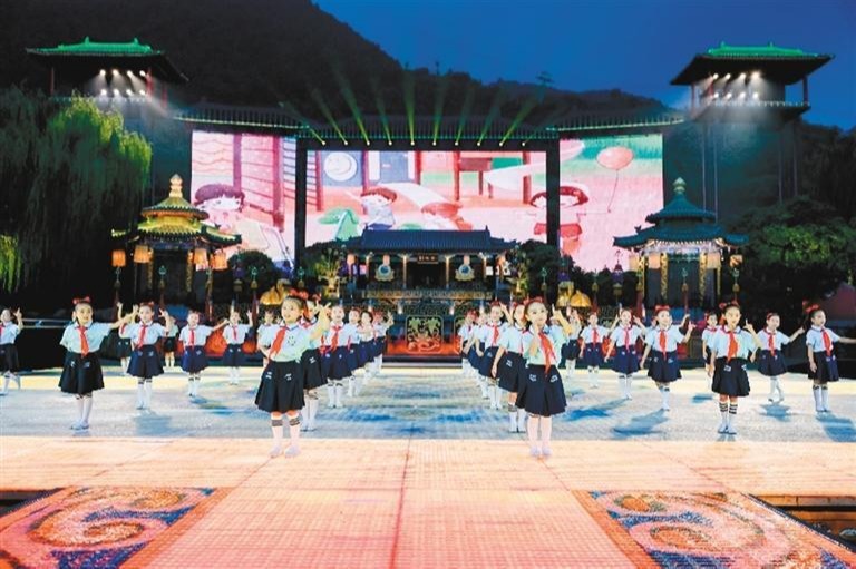“我们在祖国的怀抱里快乐的歌唱……”华清小学的40多名少先队员走进华清宫,用歌舞表演献礼“双拥之夜”,精彩的表演赢得现场观众的阵阵喝彩。西安战友艺术中心合唱团带领全体观众齐唱《祖国不会忘记》和《歌唱祖国》。山影婆娑随水舞,水姿窈窕向山藏。压轴上演的中国首部大型实景历史舞剧《长恨歌》,进一步加深了军民鱼水一家亲的深厚情谊。