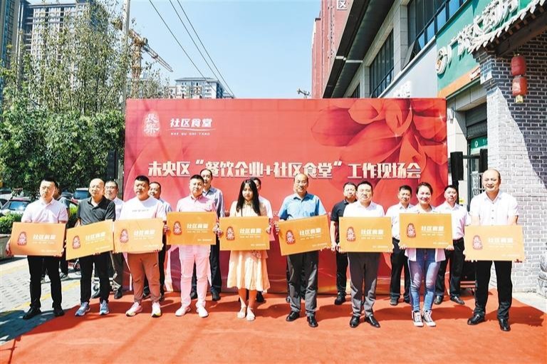未央区对首批餐饮企业参与的社区食堂进行授牌。