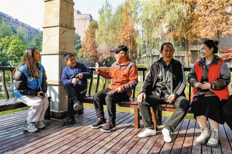 冬日午间,阳光洒满小区景观湖面。长安区郭杜街道樱花路社区西钞沁园小区湖边的“议事亭”里,笑声不断。