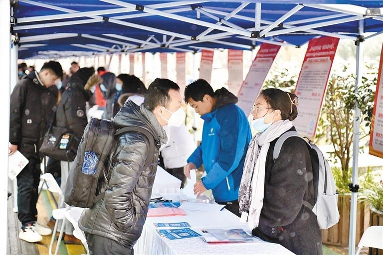 当日虽然下着雪,但招聘会现场人头攒动,数百名求职者穿梭于各个企业招聘展位前,应届毕业生李想早早地赶到了会场,在招聘会上寻找着心仪的岗位。“今天来招聘的企业很多,我拿到了很多宣传册,也投了不少简历,希望能找到一份合适的工作。”李想说。
