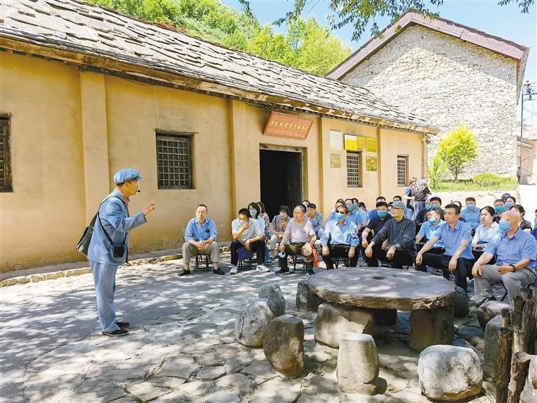参训学员在陈家坡会议旧址展馆前现场学习。