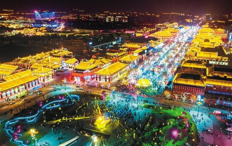 春节期间,大唐不夜城灯光璀璨,处处充满年味,喜迎八方来客。