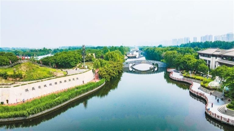 西安汉城湖水利风景区岸绿景美,呈现出一幅美丽和谐的生态画卷。