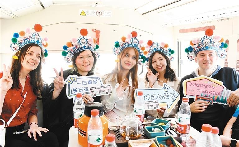 车行至雄伟的西安站,车厢内响起一阵嘹亮的歌声——“西安人的城墙下是西安人的火车,西安人不管到哪都不能不吃泡馍……”不同肤色、不同国籍的国际友人通过歌声诠释自己对这座城市的热爱。来自土库曼斯坦的留学生成功告诉记者,这首《西安人的歌》旋律轻快,许多留学生都很喜欢。