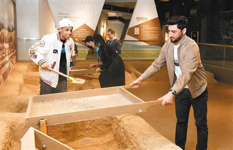 在大明宫考古探索中心,国际友人拿起手铲、毛刷,变身考古达人,发掘“文物”、拼接碎片、制作拓片、描摹古画……沉浸式体验考古工作者的日常生活。“我仿佛穿梭于古今之间,在这里一切与大唐有关的梦都变得清晰。”来自法国的留学生孟飞说。