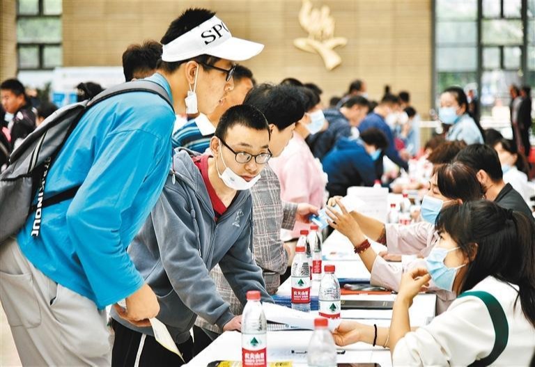 图为应聘者向招聘单位咨询相关事宜。
