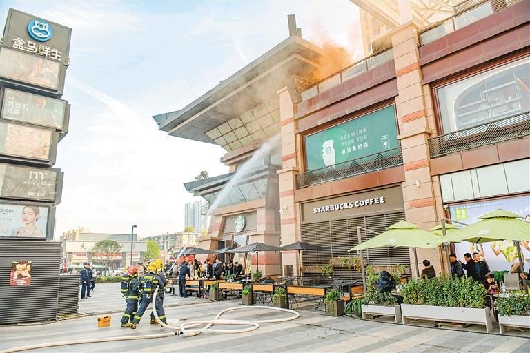 11月8日,消防员在莲湖区一商场开展消防演练。