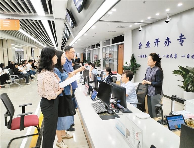 审计人员在雁塔区政务服务中心企业开办专区调查优化涉企服务政策落实情况。