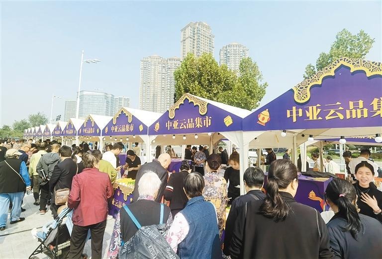 活动现场,琳琅满目的商品吸引了众多嘉宾和观众的目光。从精美的手工艺品到美味的特色食品,从独特的纺织品到珍贵的香料,每一件展品都蕴含着中亚地区的历史文化和传统工艺。现场工作人员热情地介绍产品的特点和优势,让人们对中亚云品有了更深入的了解和认识。
