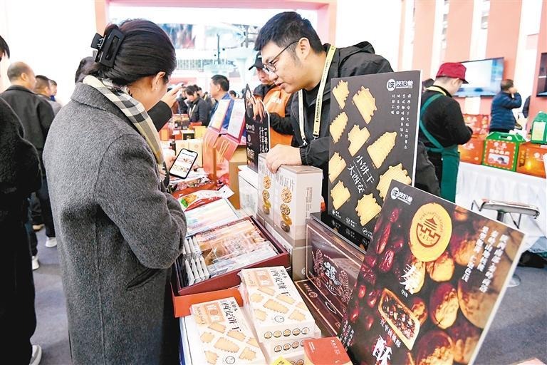 西安展馆内不仅有冰峰、德发长、同盛祥、德懋恭、盛志望、德富祥等许多承载西安人记忆的老品牌老字号,还有“蓝田玉”“蓝田荞麦饸饹”“周至猕猴桃”“临潼火晶柿子”等地理标志产品以及幸福制药、利君、巨子生物等企业带来的创新产品,吸引了许多企业及群众。