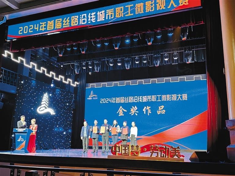 12月28日,一场展现丝绸之路沿线城市工会宣传思想文化工作最新成果的文化活动——“中国梦·劳动美”首届丝路沿线城市职工微影视大赛颁奖仪式在西安举行。大赛从2700余部作品中甄选出76部获奖作品,这些作品或大气磅礴,或细腻感人,饱含着职工们对工作的热爱、对生活的热爱,以及对梦想的执着追求,展现着劳动者的时代风采。