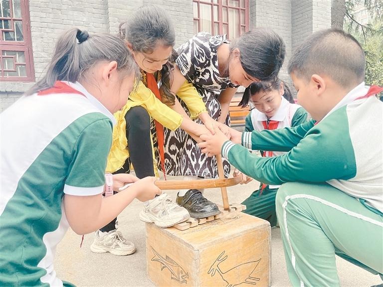 在半坡遗址博物馆,井然有序的村落布局、形色各异的彩陶纹饰和劳动生产所用的石器、骨器等为学生们呈现了一幅中华民族先祖奋力开垦拓荒、渔猎谋生、薪火相传的史诗画卷。各族学生通过实地参观馆藏文物、手工制作陶埙、体验钻木取火等活动,感受中华民族悠久的厚重历史。