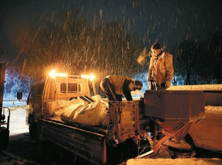 市公路局开展夜间除冰雪工作。(受访单位供图)