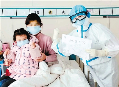 “孩子下飞机后由于检测体温高,被机场120直接送到了这里,被吓得不轻,不停地哭闹。你们这里的医生护士既耐心又专业,还给我们送来能祛病的小香囊,真的很感动,感谢可敬可爱的医护人员,是你们给了娃战胜病魔的信心和勇气……”小忻忻的妈妈感动地说。