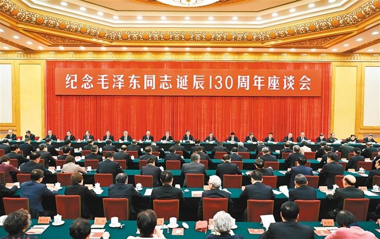 中共中央26日上午在人民大会堂举行座谈会,纪念毛泽东同志诞辰130周年。中共中央总书记、国家主席、中央军委主席习近平发表重要讲话。他强调,毛泽东同志是伟大的马克思主义者,伟大的无产阶级革命家、战略家、理论家,是马克思主义中国化的伟大开拓者、中国社会主义现代化建设事业的伟大奠基者,是近代以来中国伟大的爱国者和民族英雄,是党的第一代中央领导集体的核心,是领导中国人民彻底改变自己命运和国家面貌的一代伟人,是为世界被压迫民族的解放和人类进步事业作出重大贡献的伟大国际主义者。毛泽东思想是我们党的宝贵精神财富,将长期指导我们的行动。对毛泽东同志的最好纪念,就是把他开创的事业继续推向前进。