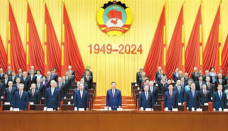 九月二十日上午,中共中央、全国政协在全国政协礼堂隆重举行庆祝中国人民政治协商会议成立七十五周年大会。习近平、李强、赵乐际、王沪宁、蔡奇、丁薛祥、李希、韩正等出席大会。