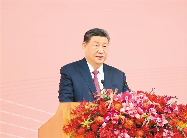 习近平表示,澳门拥有“一国两制”这一独特优势,已经打下坚实发展基础,乘着强国建设、民族复兴的浩荡东风,完全有条件有能力飞得更高、走得更远、实现更好发展。