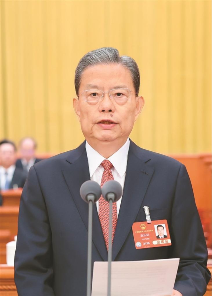 大会主席团常务主席、执行主席赵乐际主持大会。大会主席团常务主席、执行主席李鸿忠、王东明、肖捷、郑建邦、丁仲礼、郝明金、蔡达峰、何维、武维华、铁凝、彭清华、张庆伟、洛桑江村、雪克来提·扎克尔、刘奇在主席台执行主席席就座。