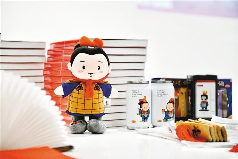 ▲本届丝博会上展出的特色产品,涉及科技、环保、教育等多个领域,琳琅满目,令人耳目一新。图为憨态可掬的兵马俑主题文创产品。