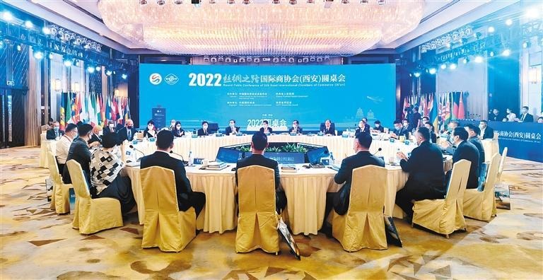 作为第六届丝绸之路国际博览会的重要活动之一,以“共商共建共享,打造高质量陆海贸易大通道”为主题的2022丝绸之路国际商协会(西安)圆桌会于8月15日下午在西安举行。来自“一带一路”沿线以及上合组织相关36个国家和地区的60家驻华贸易投资促进机构、使领馆,部分省区市贸促机构、省内各分支机构负责人、国内外企业代表,以及陕西省相关单位负责人出席会议。