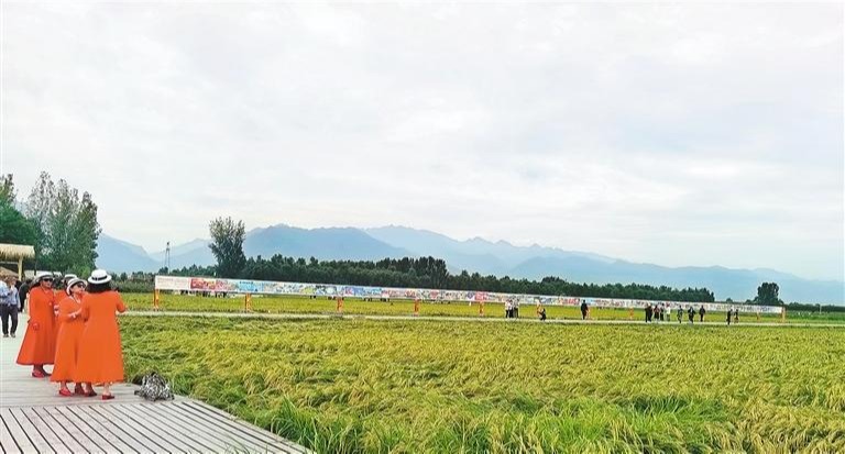 鄠邑区百幅农民诗画长卷与百亩稻田交相辉映,展示出不一样的“丰收”场景。