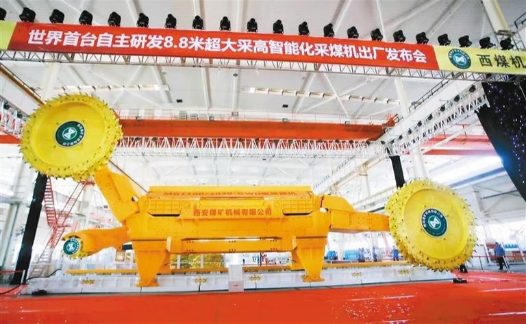世界首台自主研发8.8米超大采高智能化采煤机出厂发布会现场。