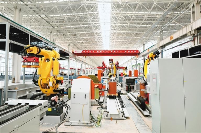 图为三一智能装备有限公司智能制造生产车间一角。