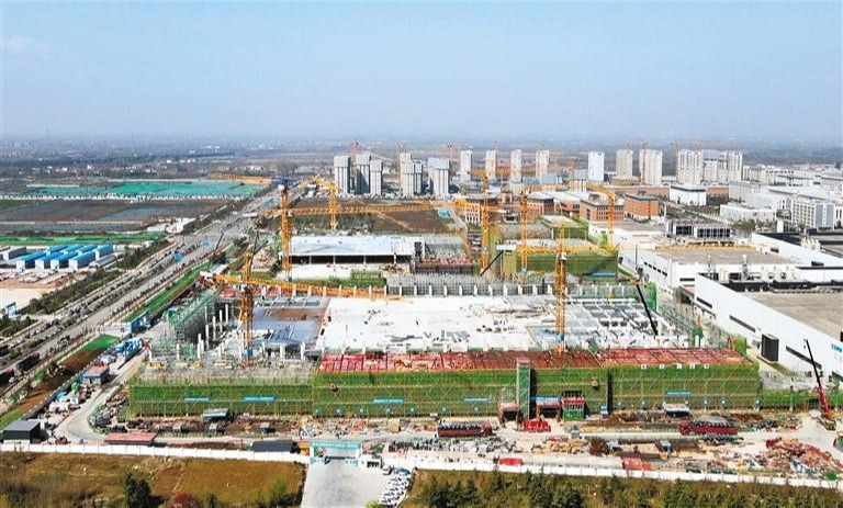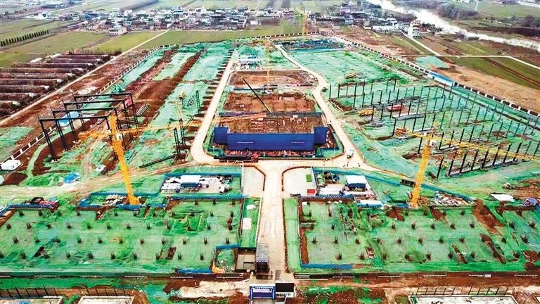 图为位于西安高新区的奕斯伟硅产业基地二期项目现场一幅火热的建设场景。