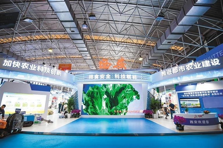 西安市展馆位于B馆,总面积342平方米,以“粮食安全,科技赋能”为参展主题。