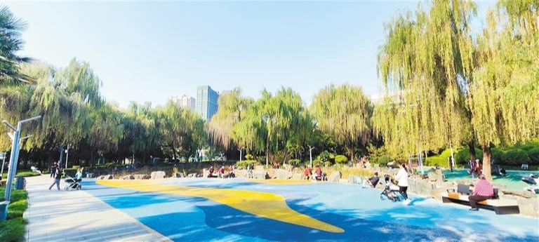 9月9日以来,我市连续收获59个“蓝天”,空气质量提升明显。图为11月7日,市民在高新区新纪元公园内散步赏景,享受阳光。