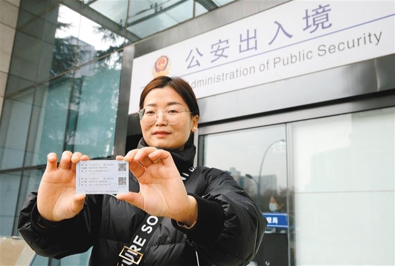 王女士拿到了西安首张往来港澳“个人旅游签注”。