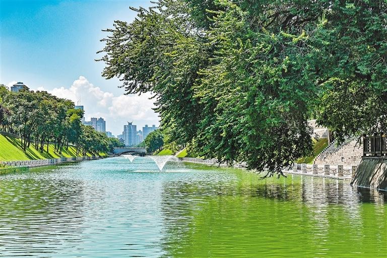 碧波荡漾的护城河与绿意盎然的环城公园,构成一幅优美的生态画卷。