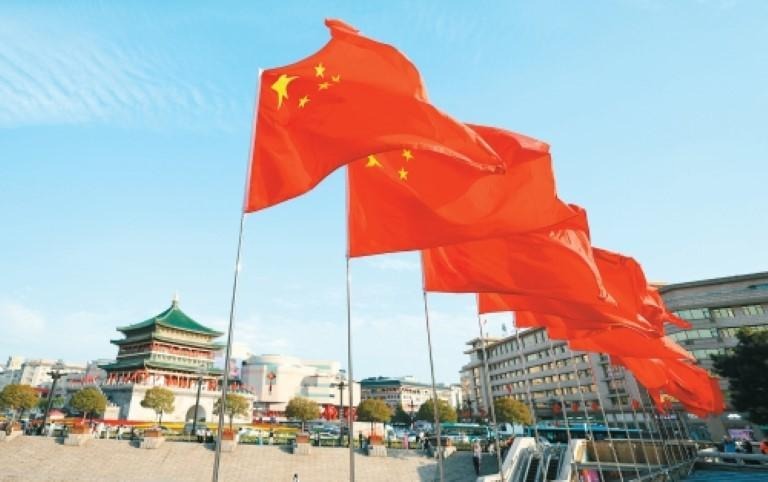 中秋国庆双节临近,古城街头国旗迎风飘扬,增添了浓厚的节日氛围。