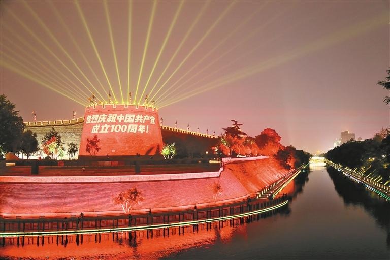 在西安城墙、大唐不夜城、西安奥体中心等地标建筑,举办的庆祝中国共产党成立100周年灯光秀活动,在央视新闻联播播出,极大激发了广大市民群众爱党爱国热情。