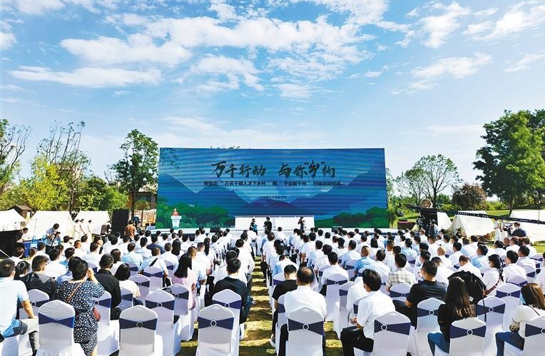 6月6日,我市抓党建促乡村振兴“万名干部人才下乡村”和“千企联千村”行动启动仪式在长安区王曲街道藏龙寨村举行。万名有志人才将与千家担当企业一道,奔赴一线,筑梦、打拼,共同谋取新时代的乡村巨变。