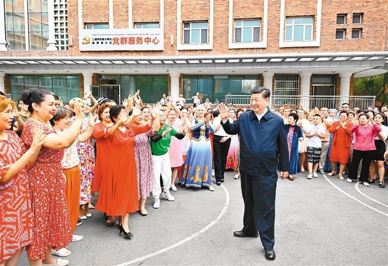 13日上午,习近平来到乌鲁木齐市天山区固原巷社区。该社区少数民族居民占95%以上。习近平走进党群服务中心大厅、爱心之家、舞蹈室、少儿阅览室,同社区居民亲切交流。习近平饶有兴致观看儿童中华优秀传统文化知识表演,他指出,中华优秀传统文化教育抓早抓小、久久为功、潜移默化、耳濡目染,有利于夯实传承中华优秀传统文化的根基。在维吾尔族居民阿布来提·吐尔逊家中,习近平仔细察看客厅、卧室、厨房等,同一家人围坐在一起拉家常。习近平强调,民族团结是我国各民族人民的生命线,新疆各民族都是中华民族大家庭不可分割的成员,要格外珍惜安定团结的大好局面,56个民族拧成一股绳,保持定力、脚踏实地,同心协力、踔厉奋发,在党的领导下为实现第二个百年奋斗目标继续奋斗。习近平指出,社区工作连着千家万户,要充分发挥社区基层党组织的战斗堡垒作用,把工作重心下沉,紧贴各族居民所思所想所盼,帮助大家办好事、办实事、解难题,促进各族群众手足相亲、守望相助,共建美好家园、共创美好未来。