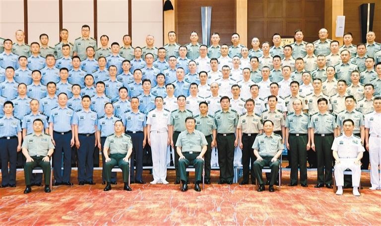 八月十七日上午,习近平在沈阳亲切接见驻沈阳部队大校以上领导干部和团级单位主官,代表党中央和中央军委,向驻沈阳部队全体官兵致以诚挚问候,并同大家合影留念。