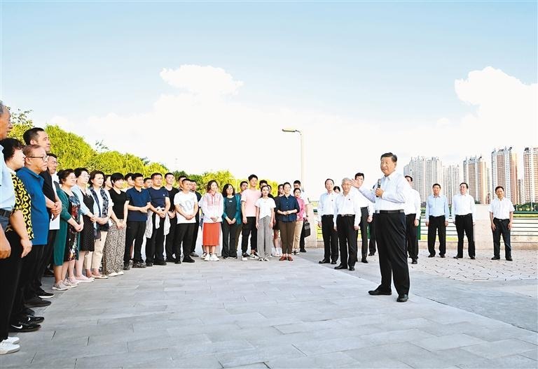八月十六日至十七日,中共中央总书记、国家主席、中央军委主席习近平在辽宁考察。这是十六日下午,习近平在锦州市东湖森林公园察看小凌河沿岸生态环境时,同正在休闲、进行文化活动的群众亲切交流。