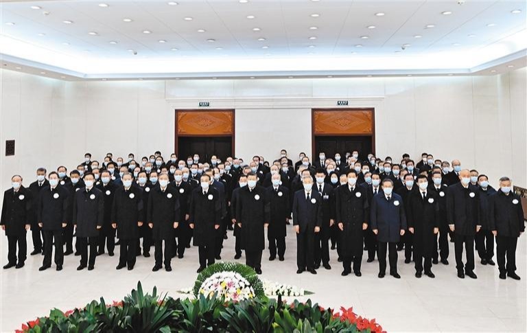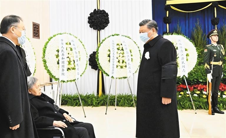 12月5日,江泽民同志的遗体在北京火化。这是习近平、李克强、栗战书、汪洋、李强、赵乐际、王沪宁、韩正、蔡奇、丁薛祥、李希、王岐山、胡锦涛等到中国人民解放军总医院为江泽民同志送别。