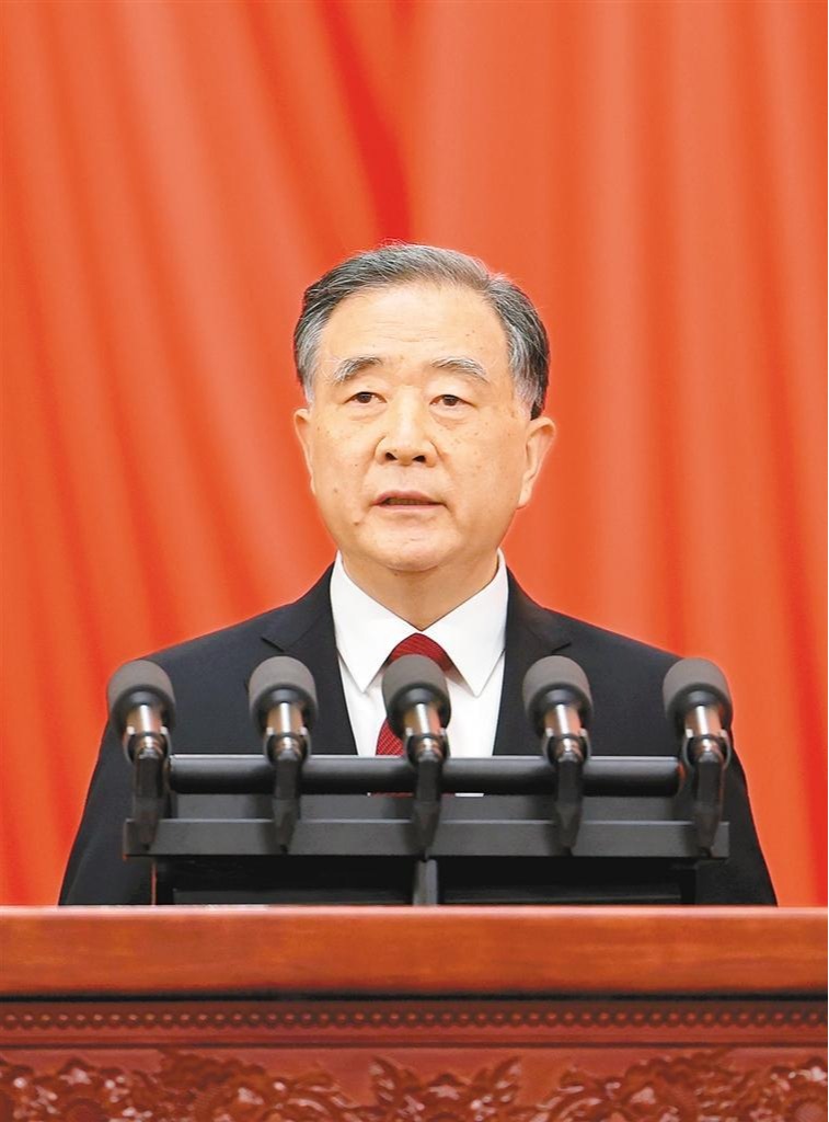 下午3时,王沪宁宣布大会开幕,全体起立,高唱中华人民共和国国歌。