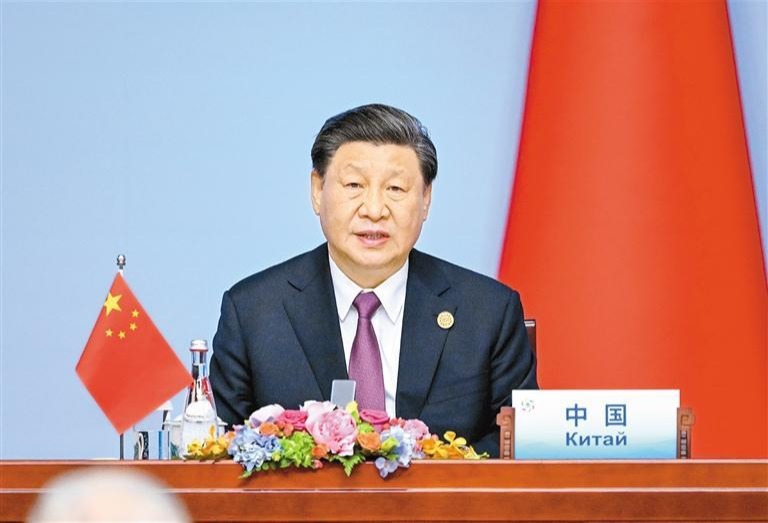 习近平强调,面对百年未有之大变局,着眼各国人民的根本利益和光明未来,我们决心携手并肩,共迎挑战,构建更加紧密的中国-中亚命运共同体,为推动构建人类命运共同体贡献力量。