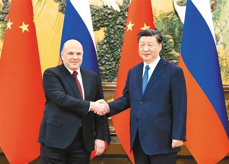习近平请米舒斯京转达对普京总统的诚挚问候。习近平指出,今年3月,我对俄罗斯进行成功国事访问,同普京总统擘画了今后一个时期中俄关系发展和各领域合作蓝图。巩固好、发展好中俄关系,既是民心所向,也是大势所趋。希望双方继续发挥中俄合作空间大、前景广、动力足的优势,把各领域合作推向更高水平,不断丰富两国新时代全面战略协作伙伴关系的内涵。