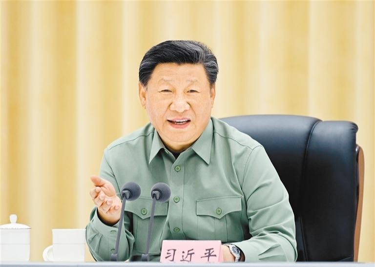 6月7日,中共中央总书记、国家主席、中央军委主席习近平在内蒙古调研边境管控和边防部队建设情况,代表党中央和中央军委,向驻内蒙古边防部队全体同志致以诚挚问候。图为习近平听取有关情况汇报后发表重要讲话。