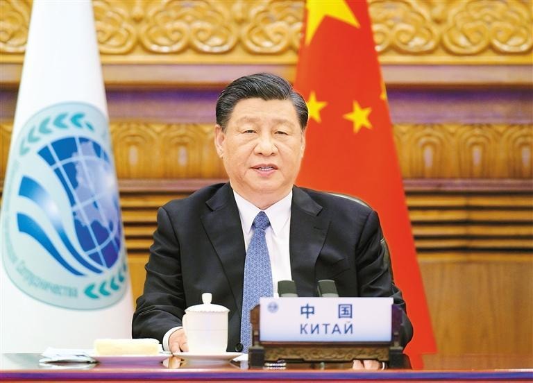 国家主席习近平7月4日下午在北京以视频方式出席上海合作组织成员国元首理事会第二十三次会议并发表题为《牢记初心使命 坚持团结协作 实现更大发展》的重要讲话。