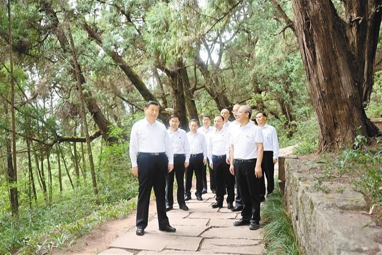 25日下午,习近平首先来到广元市剑阁县考察了翠云廊。这里是古代关中平原通往四川盆地古蜀道的重要路段,有迄今保存最完好的古代人工栽植驿道古柏群。习近平听取古蜀道发展历程、翠云廊整体情况介绍,沿古道步行察看千年古柏长势,详细询问历史上植柏护柏情况。他指出,这片全世界最大的人工古柏林,之所以能够延续得这么久、保护得这么好,得益于明代开始颁布实行“官民相禁剪伐”、“交树交印”等制度,一直沿袭至今、相习成风,更得益于当地百姓世代共同守护。这启示我们,抓生态文明建设必须搭建好制度框架,抓好制度执行,同时充分调动广大人民群众的积极性主动性创造性,巩固发展新时代生态文明建设成果。临行前,他嘱咐当地负责同志,要把古树名木保护好,把中华优秀传统文化传承好。