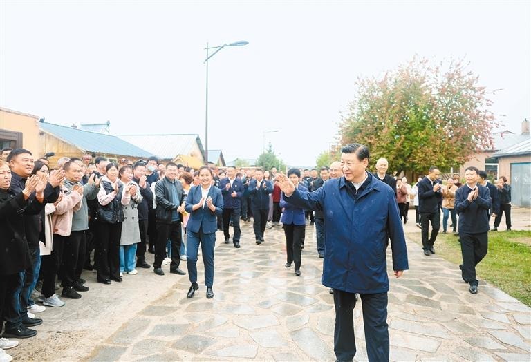 离开小院时,当地群众在道路两旁热情欢送总书记。习近平亲切地对大家说,北极村前景可期。希望广大干部、群众共同努力,把乡村建设得更好、把生态保护得更好、让人民生活得更好,共同奔向中国式现代化的美好未来。